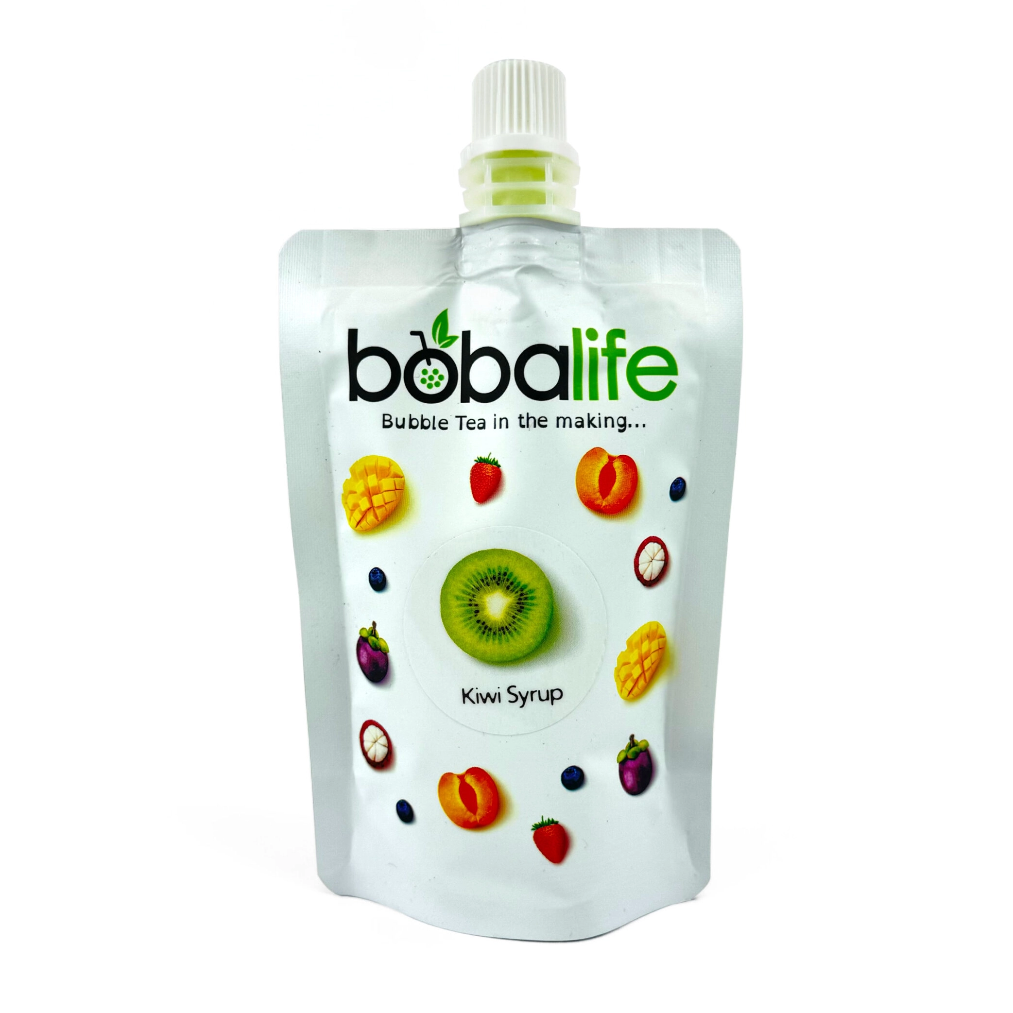 Boba Life premium Taiwanese kiwi flavoured bubble tea syrup by Boba Life in small 150g packet. Use this kiwi syrup mix to create a fruit bubble tea and add bursting bubbles or traditional chewy boba balls. Just mix the syrup with your choice of cold tea, add the boba, ice and serve with a jumbo straw. Can also be used to add colour and flavour to bubble tea milk drinks.