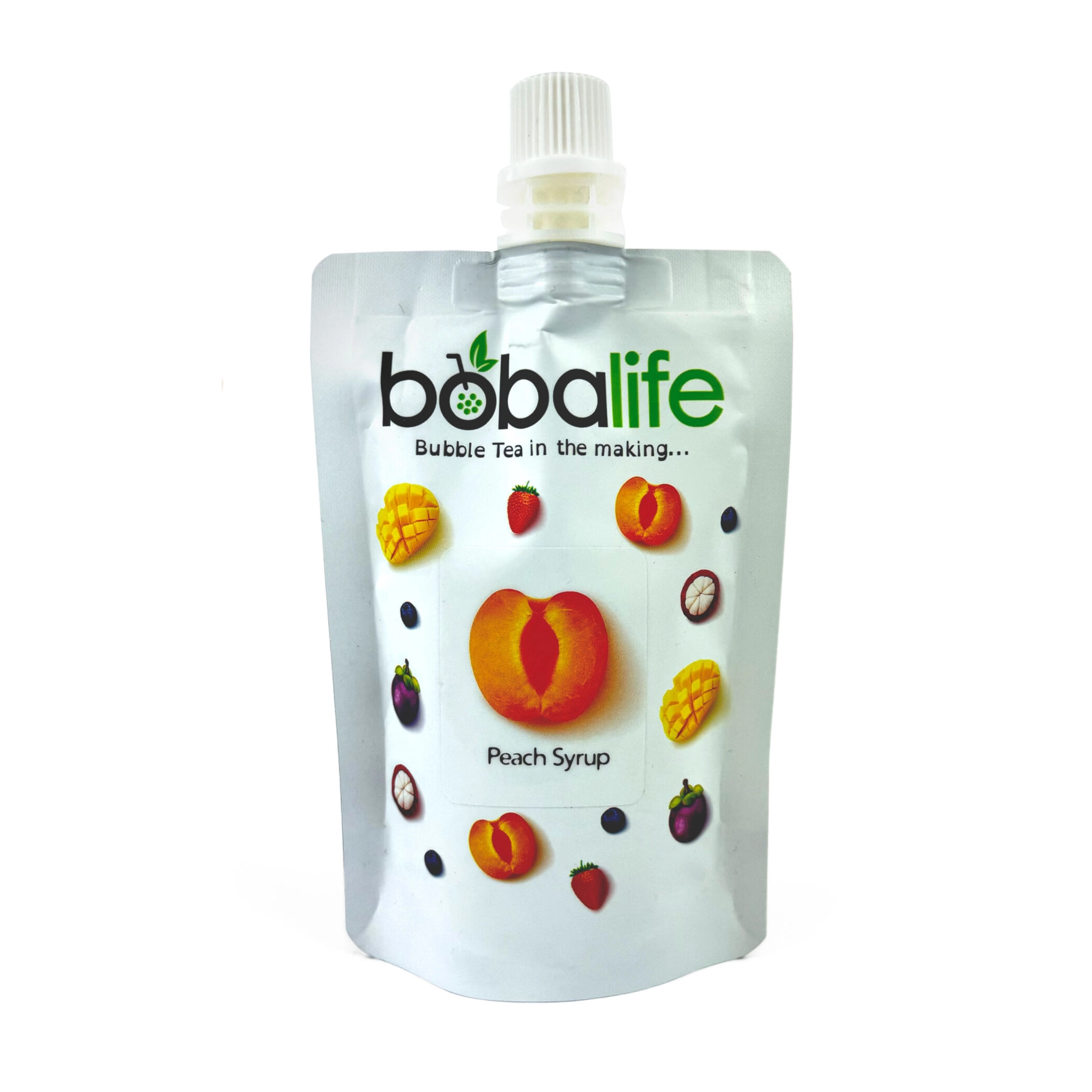 Boba Life premium Taiwanese peach flavoured bubble tea syrup by Boba Life in small 150g packet. Use this peach syrup mix to create a fruit bubble tea and add bursting bubbles or traditional chewy boba balls. Just mix the syrup with your choice of cold tea, add the boba, ice and serve with a jumbo straw. Can also be used to add colour and flavour to bubble tea milk drinks.
