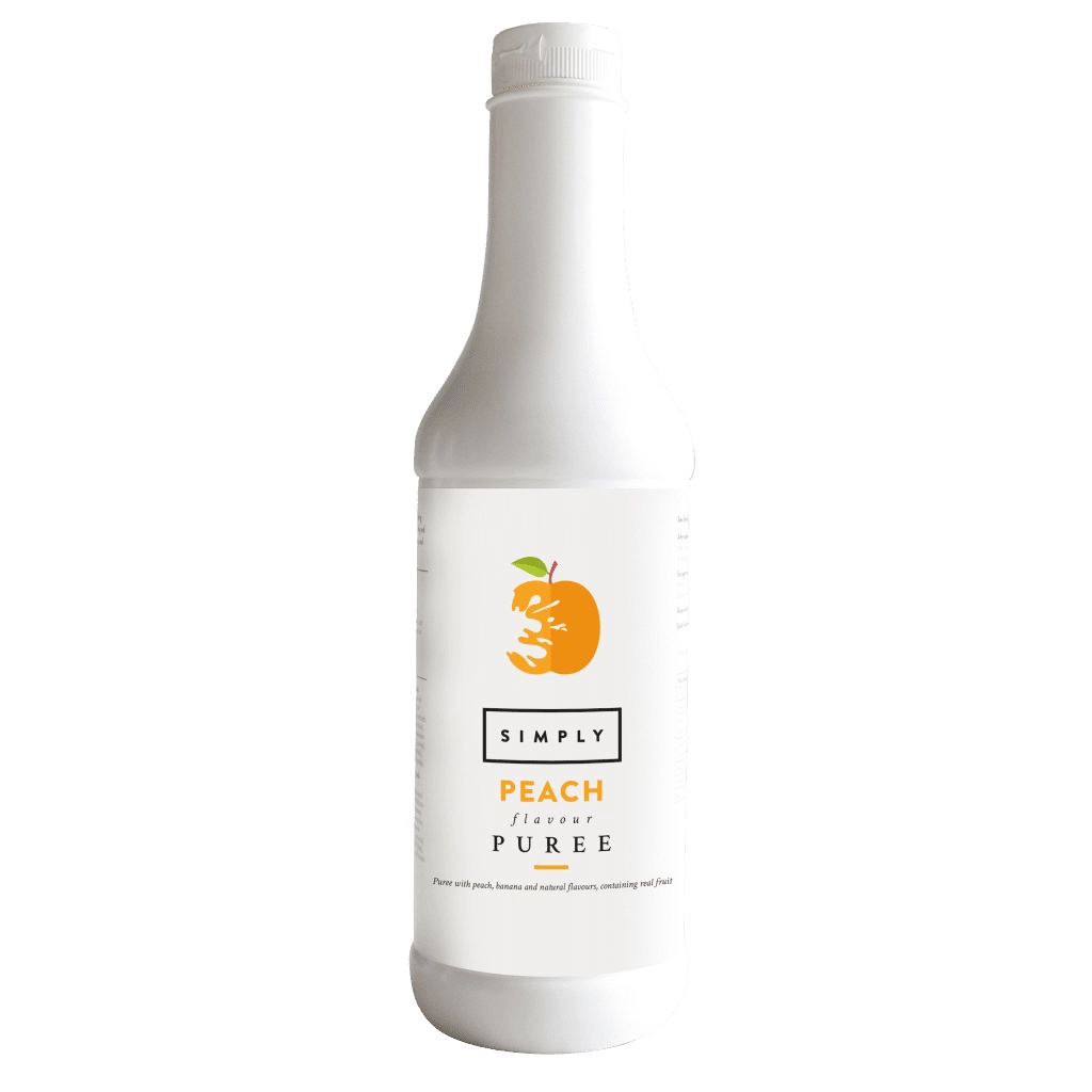 Simply Peach Puree in a 1 litre plastic bottle. Bring the exotic taste of peach to your drinks with Simply Peach Puree. Perfect for teas, lemonades, smoothies, or cocktails. This vibrant, juicy puree adds a deliciously fruity flavour to everything. It’s the perfect ingredient for creating refreshing beverages. Packed with real fruit, these user-friendly purees can be layered into cocktails, blended into smoothies or added into fruity frappes.